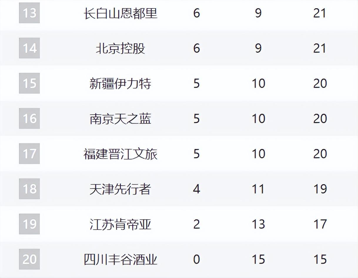 广州则排在第12,他们这轮溃败浙江,但本赛季晋级季后赛的可能性依然存在。
