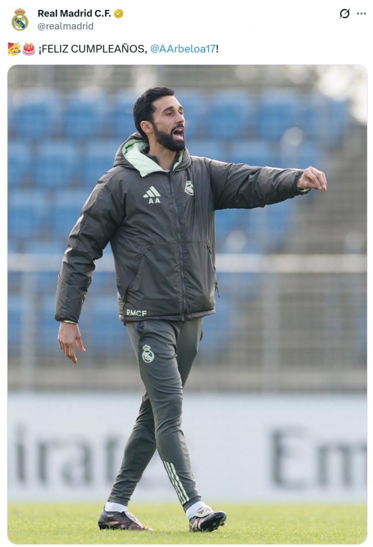 1月17日讯 今天是皇马新帅阿韦洛亚的43岁生日,皇马官方为他庆生。