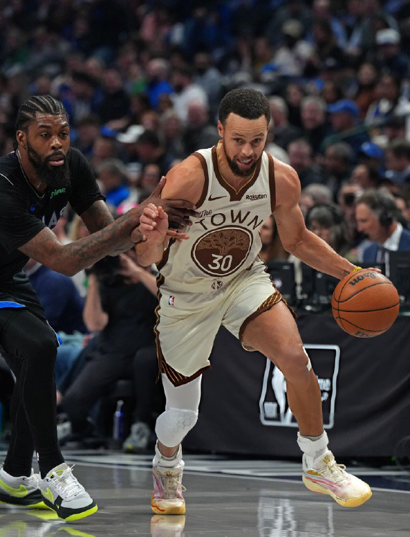 重新回到赛场之后,尽管独行侠想尽办法去限制库里的进攻,甚至萌神只要过中线拿球,就准备对他进行包夹,但并没有太明显的效果,全场战罢库里仍然保持了27投14中的命中率,其中三分球15中8,砍下了全场最高的38分。